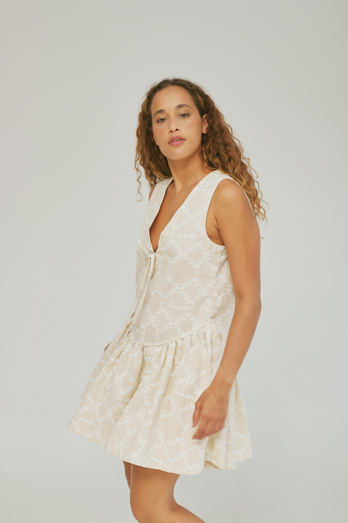 For this collection, we present our new silhouette: the Azúcar Dress. Loose and fresh, with a long waistline and V-neck, it’s comfortable and perfect for those special days that mean so much to you.