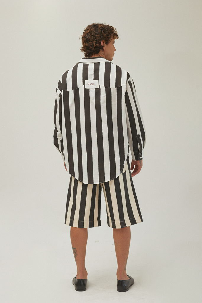 We welcome our new Stripes Bermuda Shorts for men. It keeps our retro silhouette but now comes in a wider and longer fit. Made from 100% cotton rigid denim, they're as comfortable as they are durable, ensuring they'll last forever and look so cool you won't want to take them off.