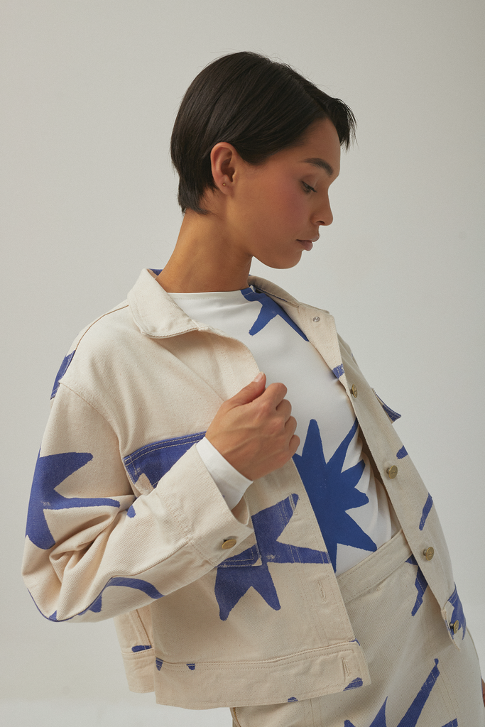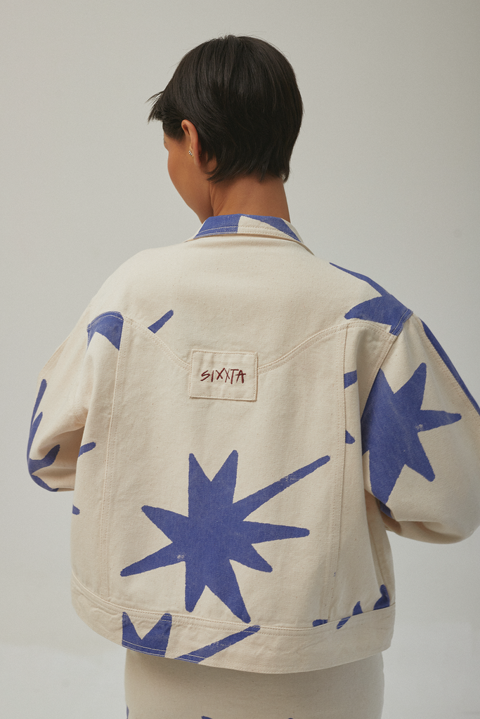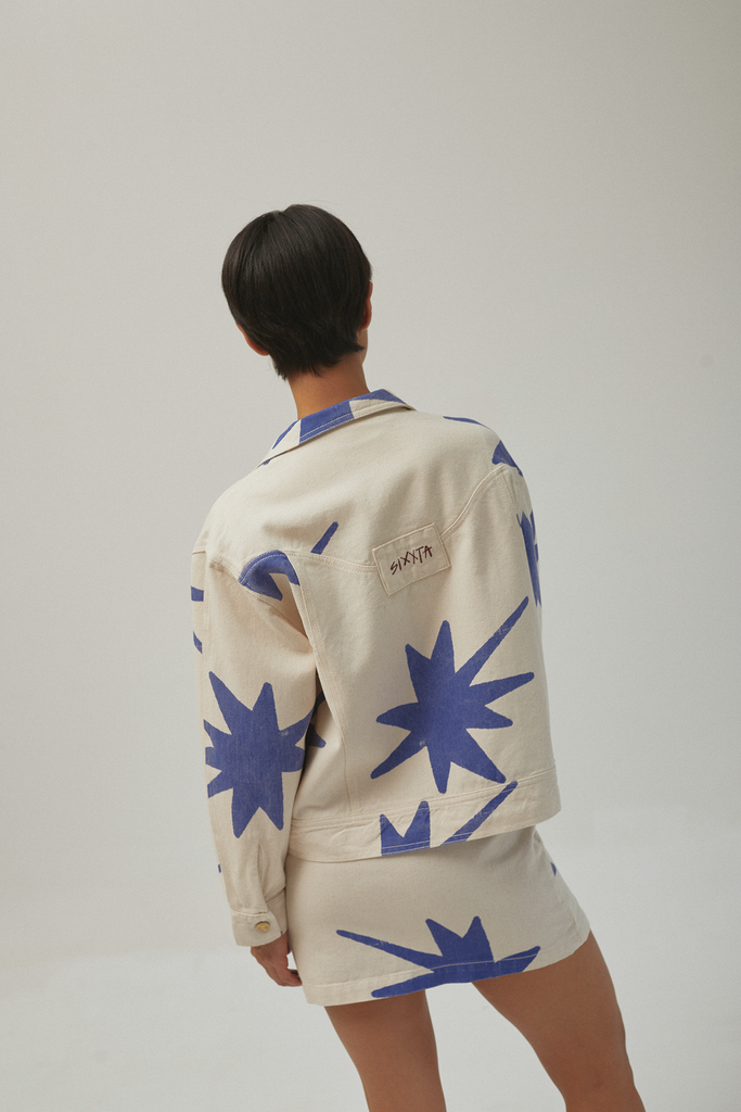 Our Solar Jacket is the piece with the most comfortable and fun fit. It maintains our Wiggly cut and collar, making it even more special. Wear it as a set with our Maxi Jean or complement it however your creativity allows you to play with it.