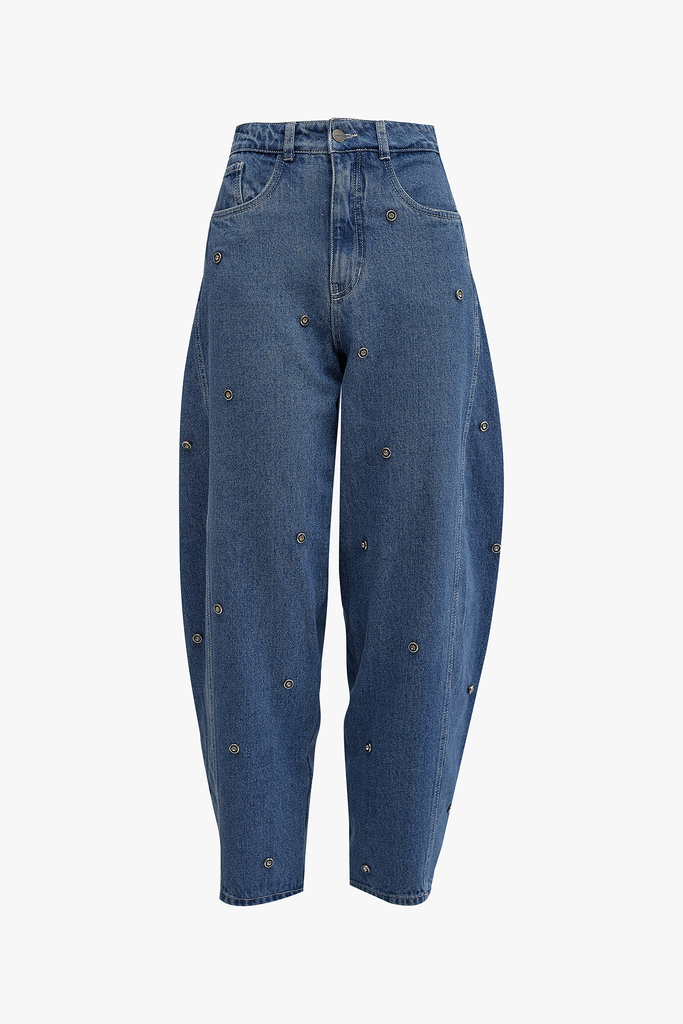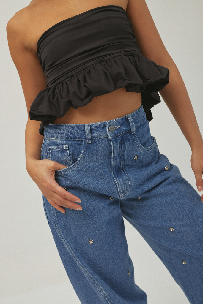 We welcome our Local Denim to the new Balloon Jeans fit in the Huevito Jeans. Made from rigid cotton denim, they feature a different and fun silhouette, with a high rise, wide legs, and ankle cuffs that create this gathered fit. We’ve incorporated our signature curves into the stitching and cuts of the garment to make them even more Sixxta.