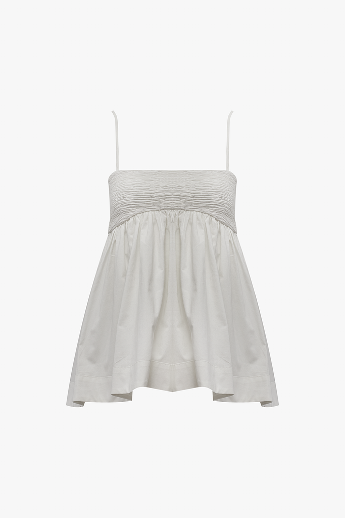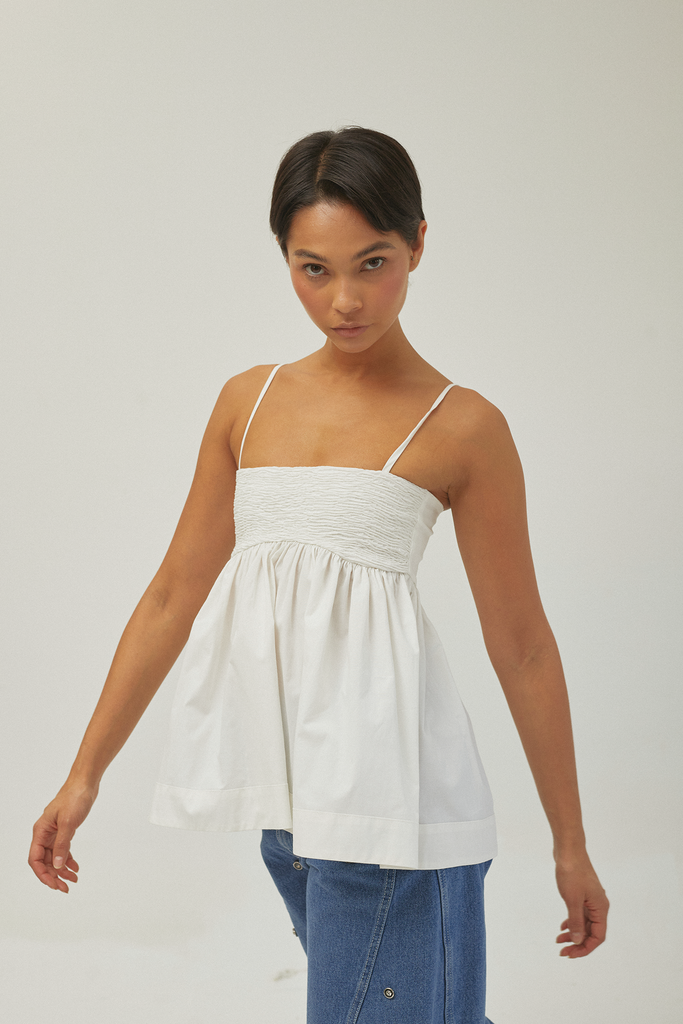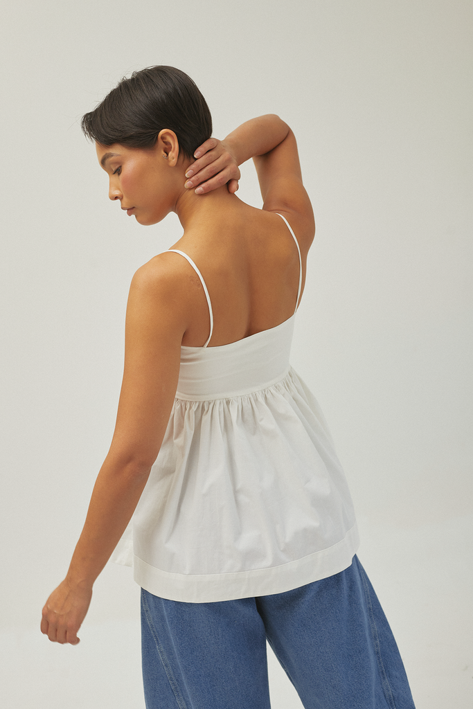 Tick tock, tick tock... midnight is approaching, and the celebration is all about our new La Visita Top. This piece features a romantic silhouette with a corrugated detail on the top and delicate straps that provide the necessary support to enjoy its flowing shape.