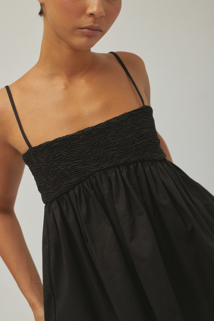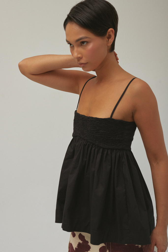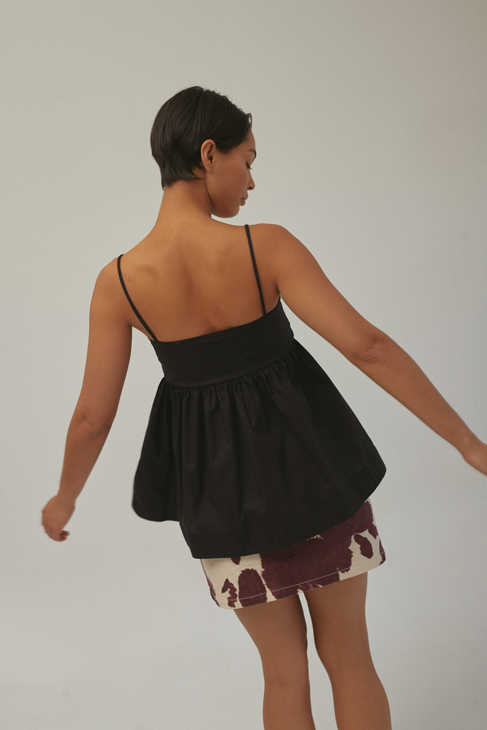 Tick tock, tick tock... midnight is approaching, and the celebration is all about our new La Visita Top. This piece features a romantic silhouette with a corrugated detail on the top and delicate straps that provide the necessary support to enjoy its flowing shape.
