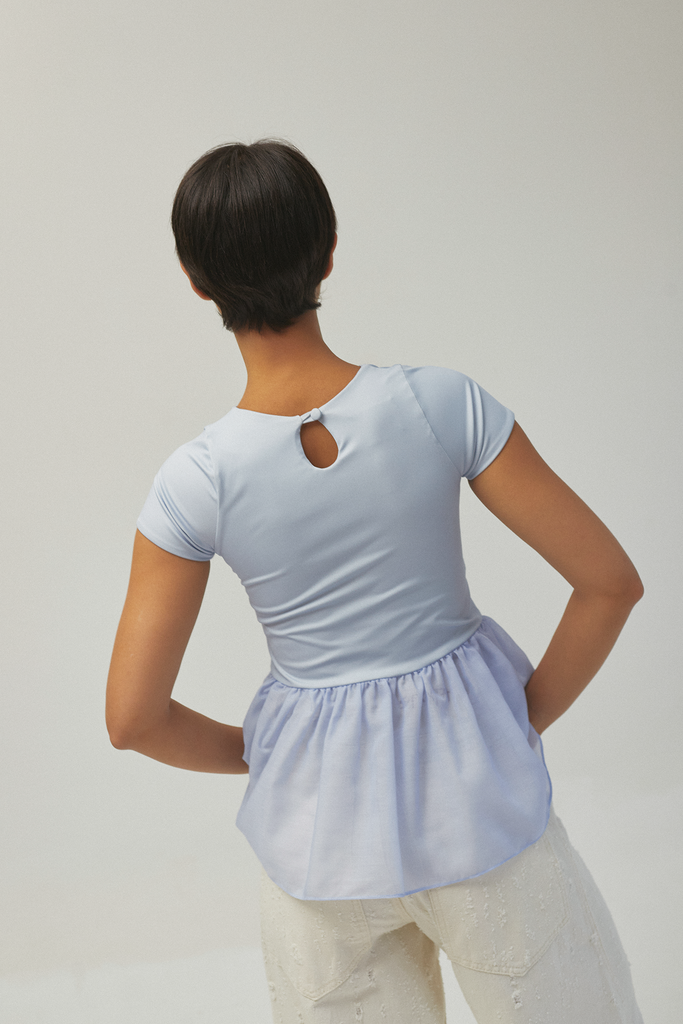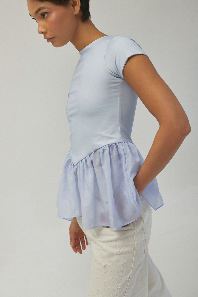 The Velas top is one of the gems of this collection; we’ve reinterpreted the silhouette of the Poema dress, giving it a fresh touch with sleeves and a stretchy fabric on the top, while maintaining its romanticism with the peplum design and V-shape at the waist. It’s a unique piece that will become a favorite for its elegance and versatility.