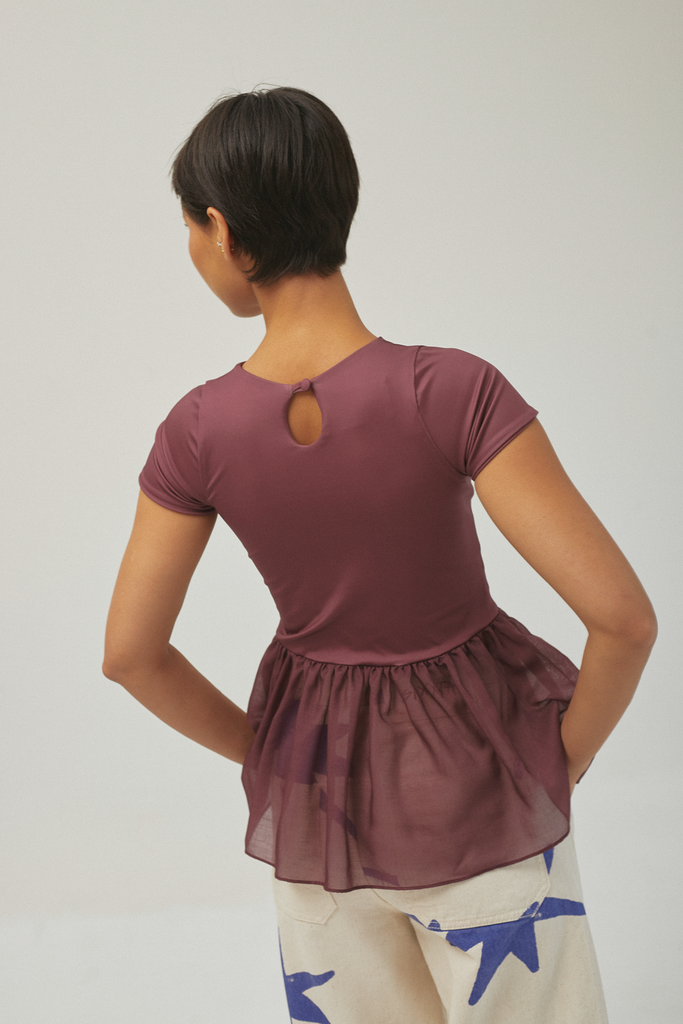 The Velas top is one of the gems of this collection; we’ve reinterpreted the silhouette of the Poema dress, giving it a fresh touch with sleeves and a stretchy fabric on the top, while maintaining its romanticism with the peplum design and V-shape at the waist. It’s a unique piece that will become a favorite for its elegance and versatility.