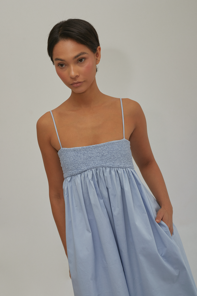 Classics always come back, and our Anomalía Dress returns revamped for this new collection. This piece brings back the beloved, classic silhouette, with its comfortable straps that fit perfectly, but now features a corrugated top, adding a nostalgic and unique detail, perfect to accompany you in every special moment of this season.