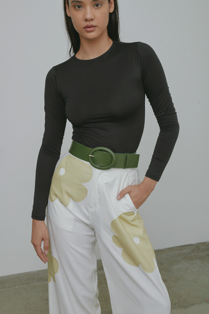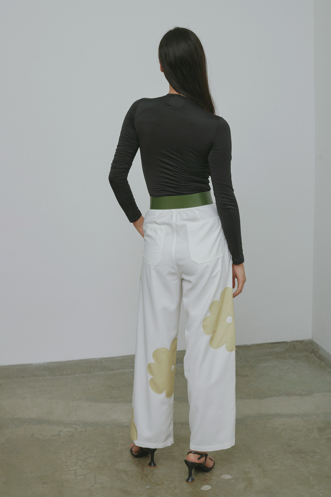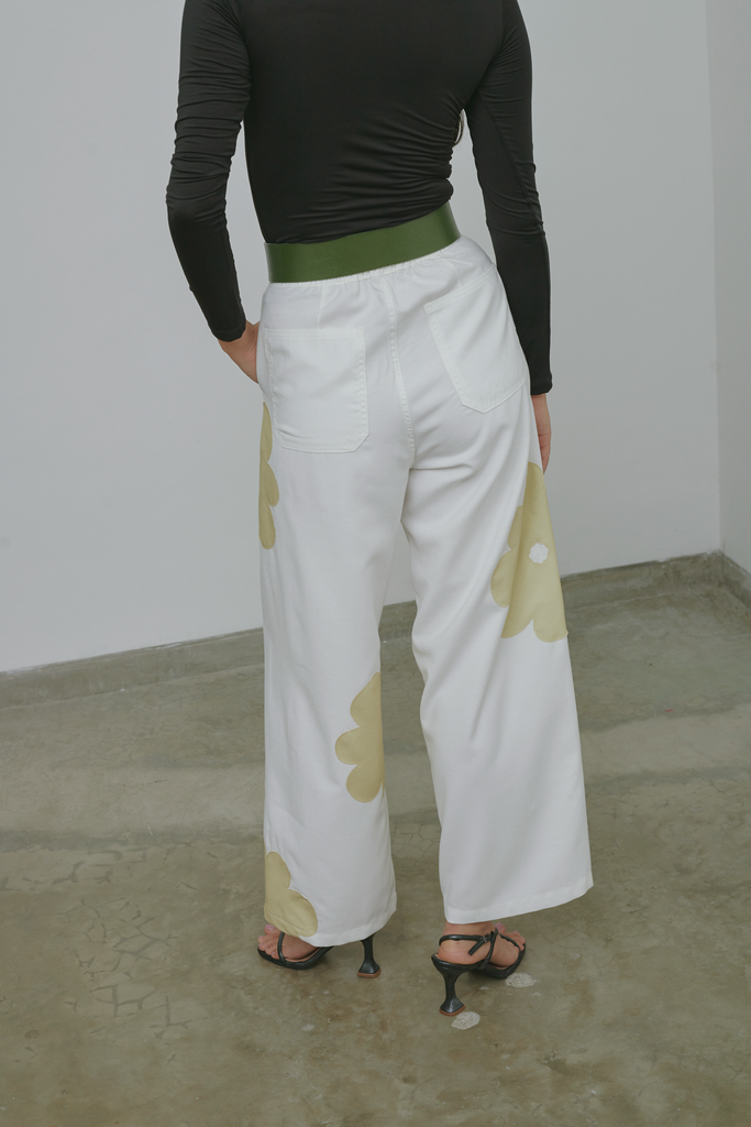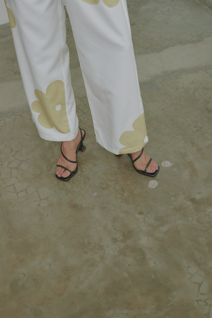 From this collection and after many tests we managed to include patch-like cutouts to our pieces! Like our Flora Bermuda short, these new Flora pants come adorned with cuts of flowers glued in detail.