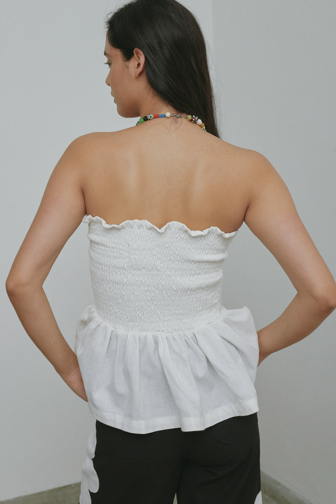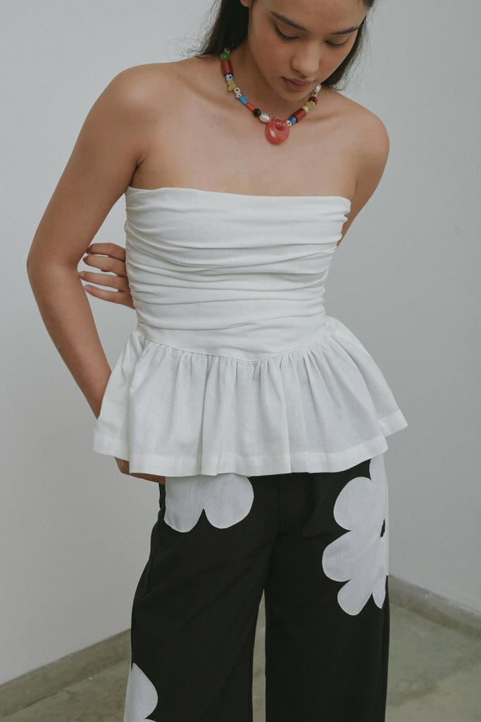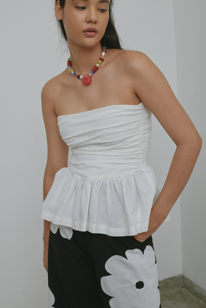 Like a romantic poem, this top makes us dream of elegant and classic looks. It has a drape on the torso to create texture on the garment and a cut at the waist that will give dimension to your silhouette!