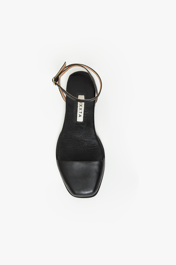 Our Campiña Flats are defined by their unique structure and the size of the capellada (upper), as it seems to be cut, revealing the beginning of the toes — a detail we find absolutely beautiful. The ankle strap holds the sole perfectly in place, highlighting the shoe's toe and the black trim around it.